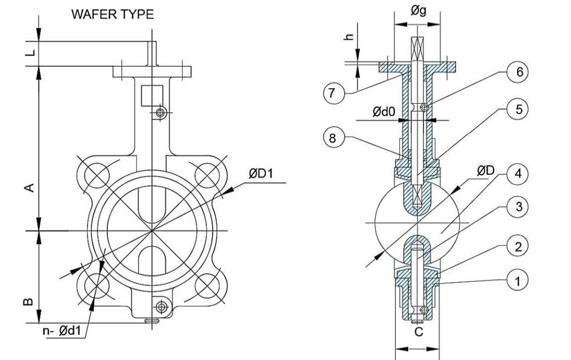 | 4 | Disc | Ductile Iron+Nylon, CF8, CF8+PTFE(PFA), CF8M, CF8M+PTFE(PFA), bronze |