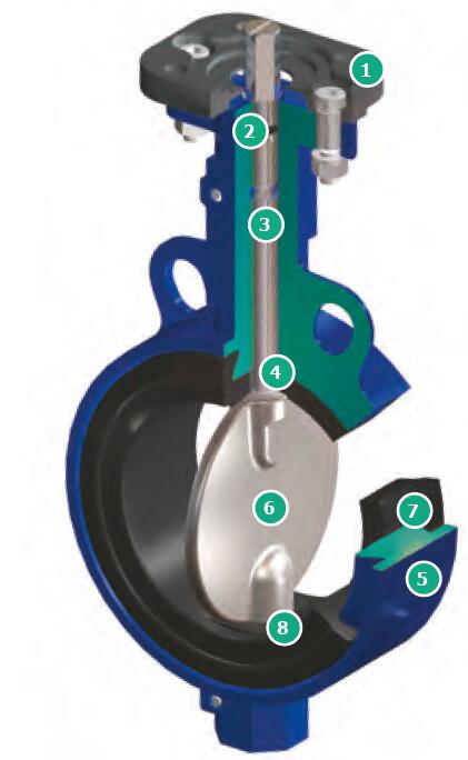 Wafer resilient butterfly valves are used to control the flow of water, oils, air, vacuum and other media compatible with the materials of construction. Valves can be operated with manual air or electric actuators.