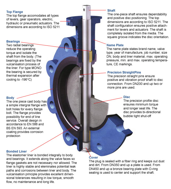 Full Lug Type Butterfly Valve with Centric Disc and Bonded Liner. 100% bi-directional bubble tight shut off.