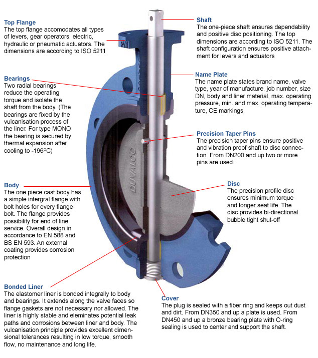 Mono Flange Butterfly Valve with Centric Disc and Bonded Liner. 100% bi-directional bubble tight shut off.