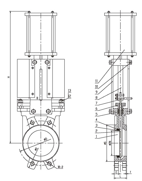 | DN | L | O | D | S | C | f | M-1 | B | H | Weight (KGS) |